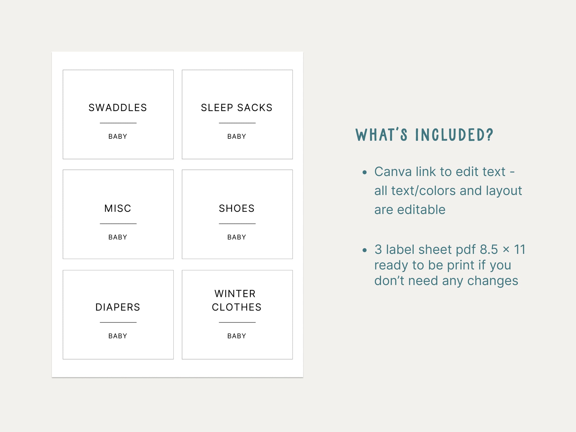 *This label set comes with 18 editable labels and you can add more labels if needed.** 6 labels per sheet (4 sheets total for printing)