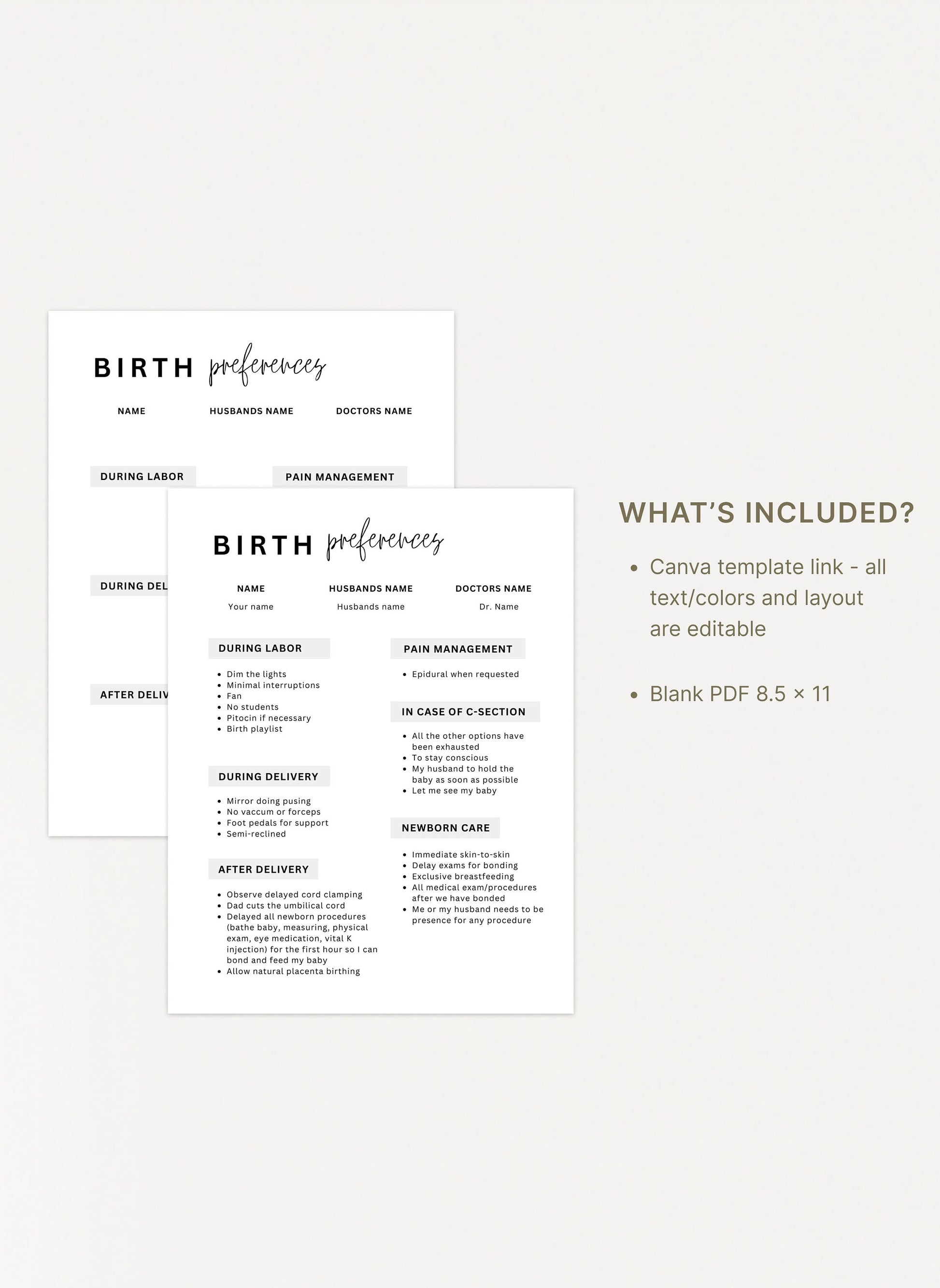 Printable Birth Plan Template