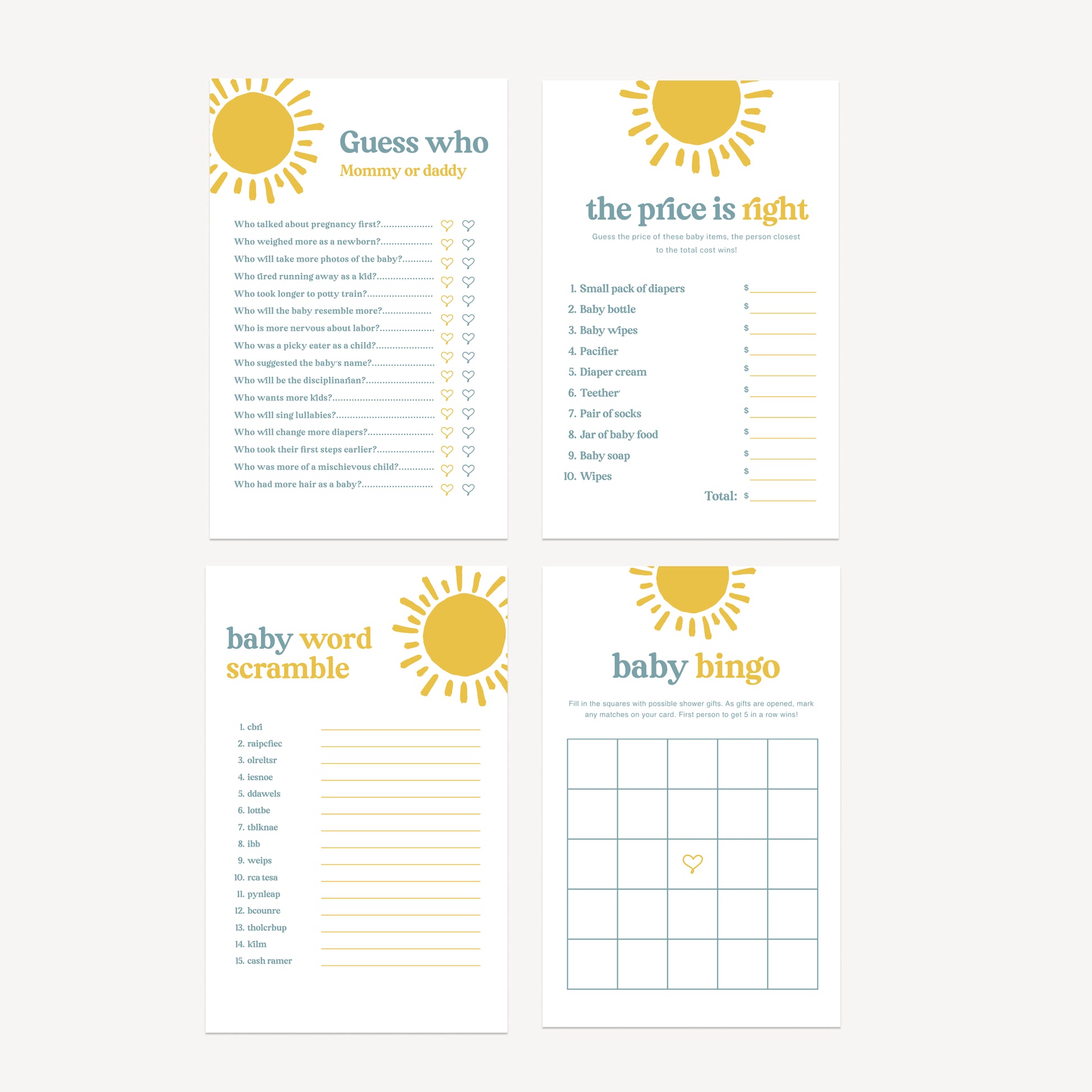 Here comes the son Baby Shower Party Bundle is the perfect baby shower theme! Use these beautiful design templates to customize and print everything you need to host the perfect baby boy shower!