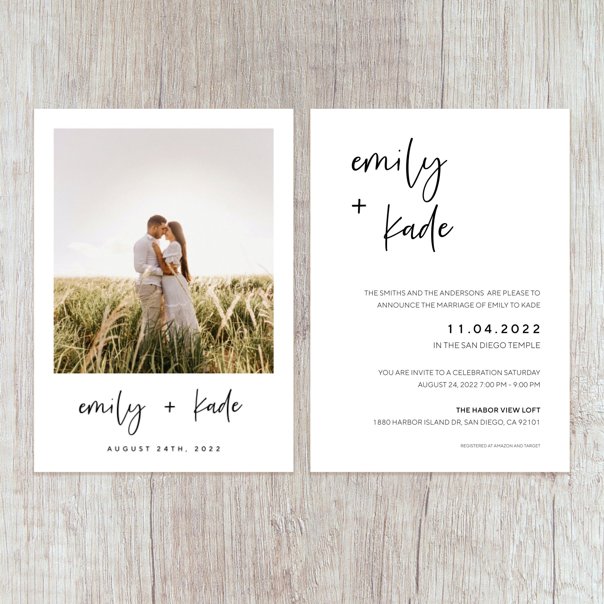 Polaroid Minimalist Script LDS Wedding Invitation with sealing card (Emily + Kade)
