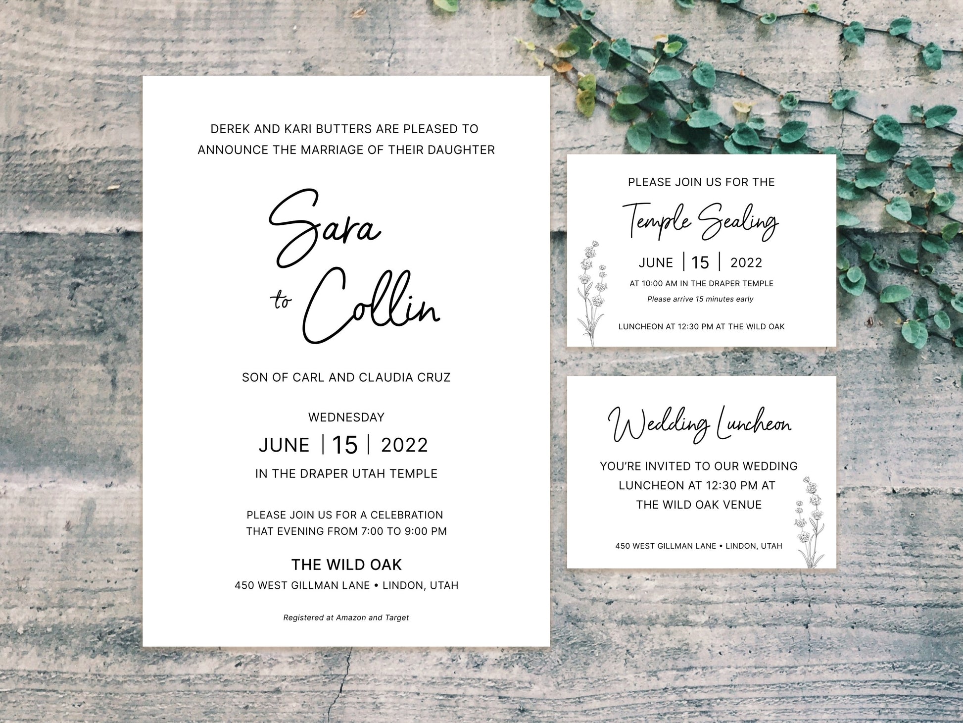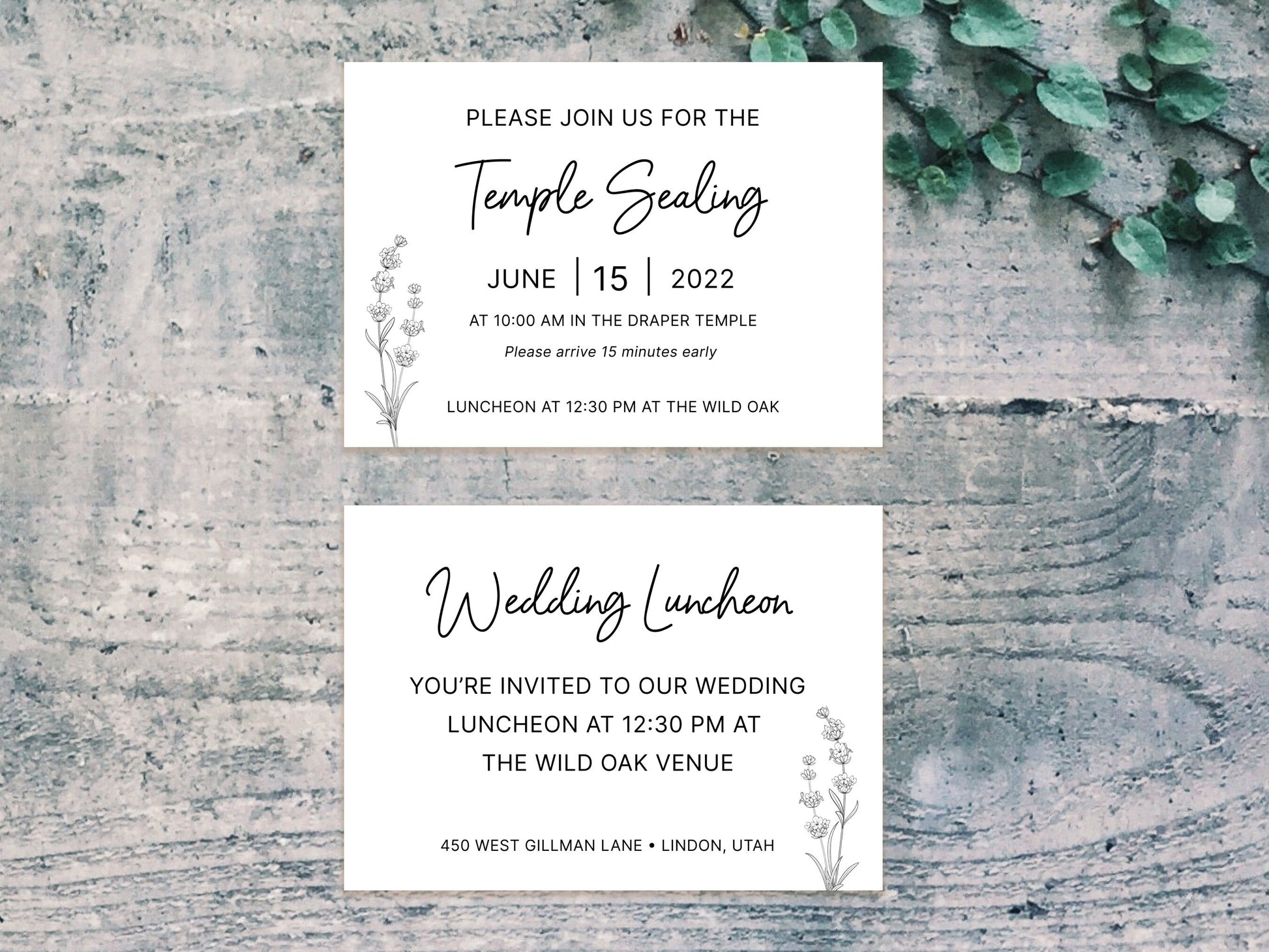 Script LDS Wedding Invitation with temple sealing card (Sara + Collin)