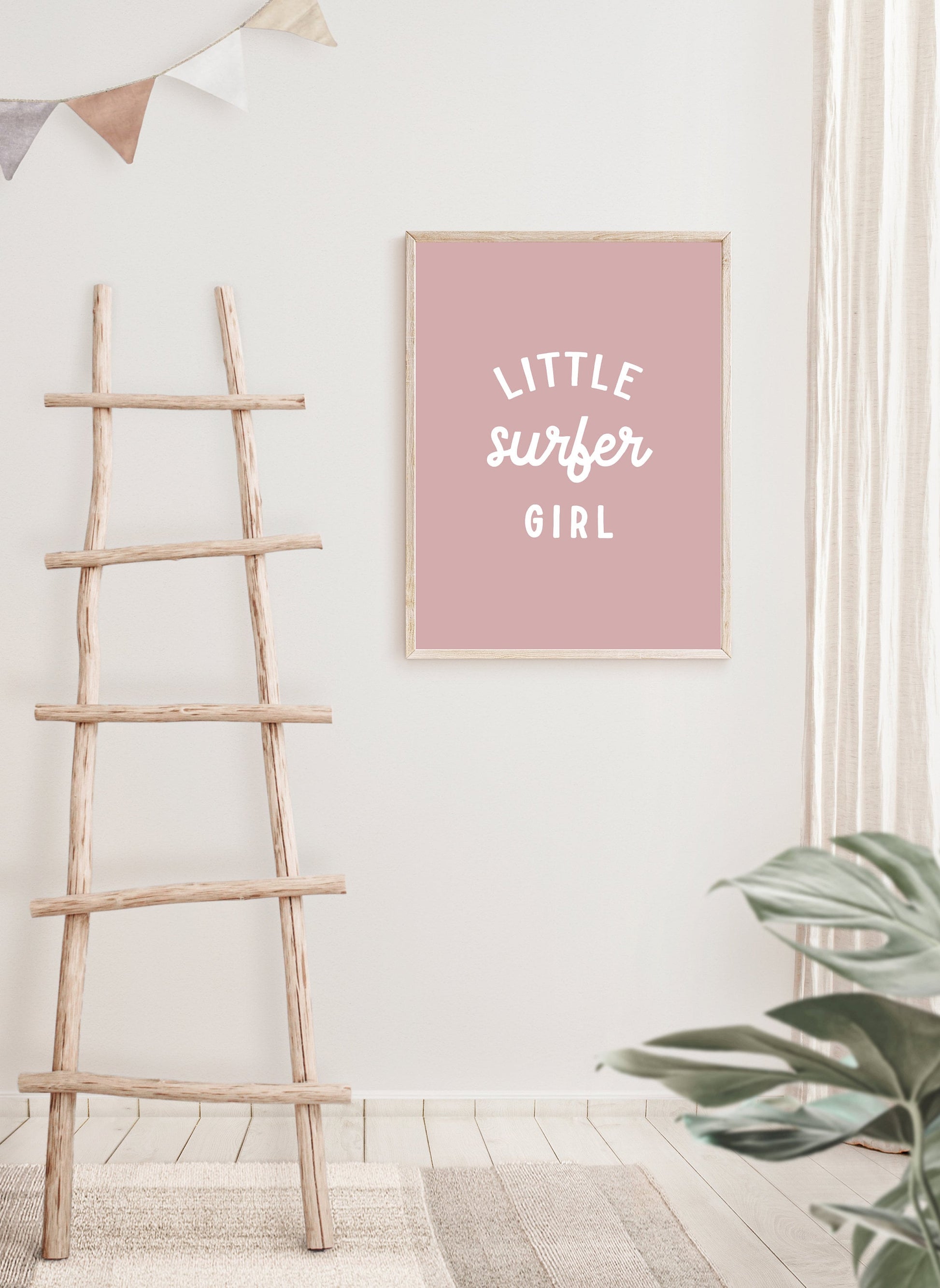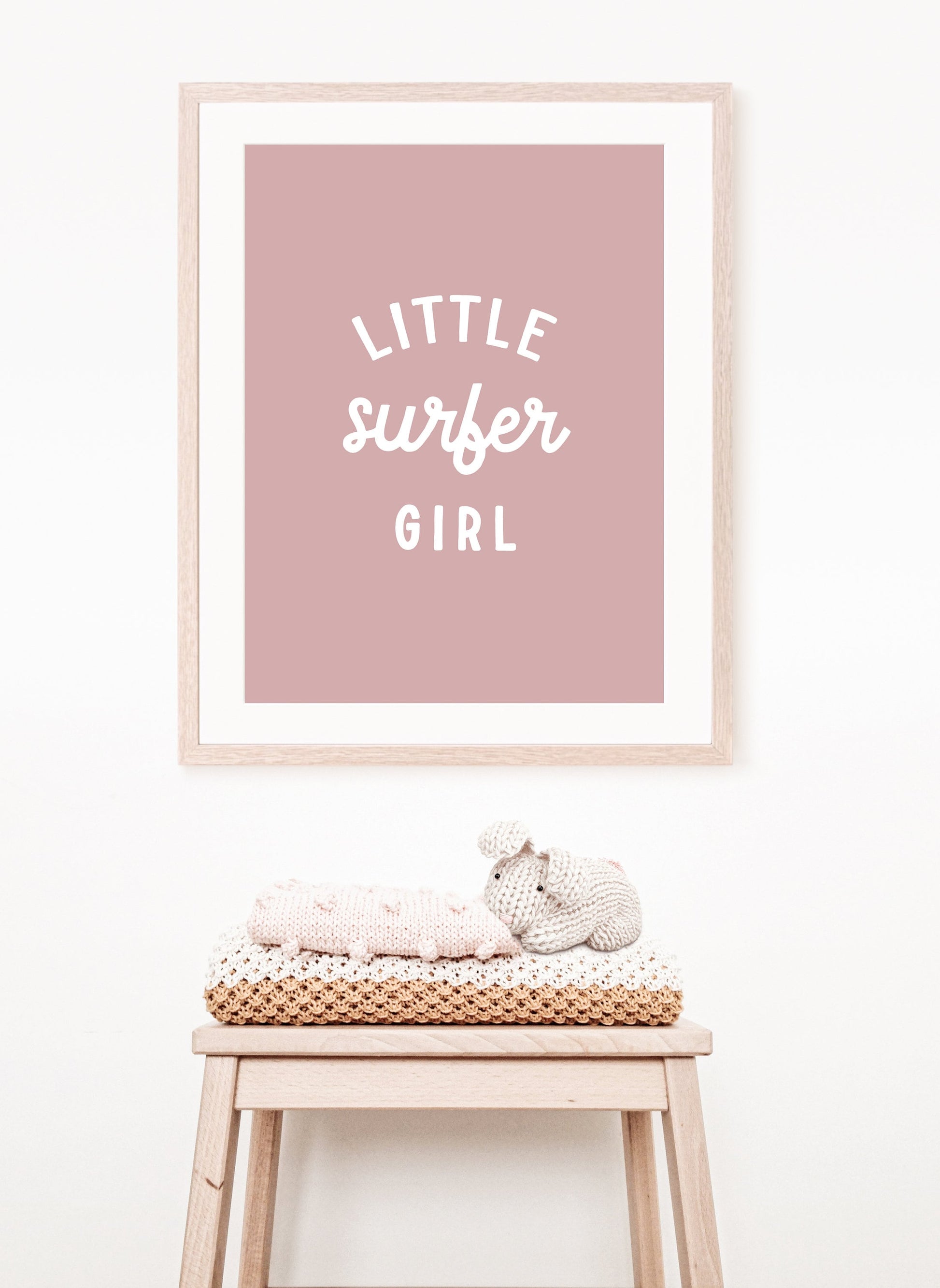Little Surfer Girl Wall Print Pink