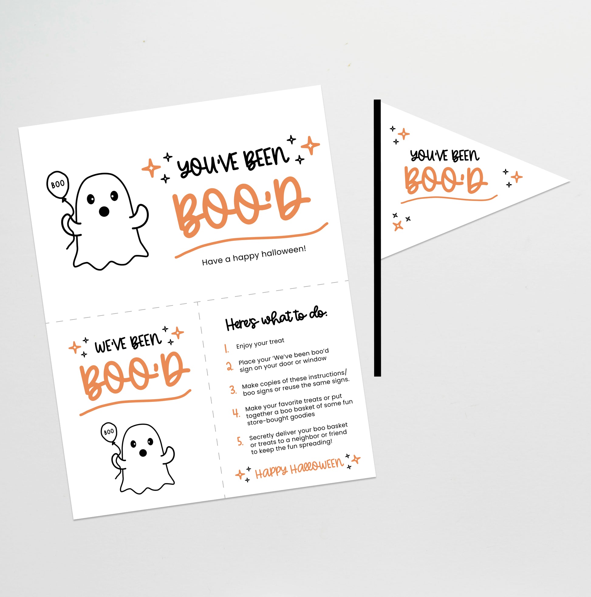 - You've been boo'd sheet 8.5x11" PDF file that includes the Instructions for your recipient to keep the fun going and cut out for We've been boo'd for their door/window.